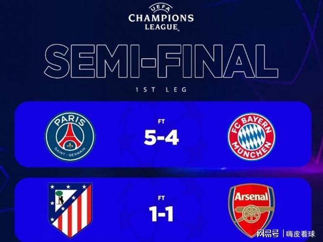 没有冷门,没有意外,如同不少球迷赛前所想,欧冠半决赛首回合,两场比赛展现出两种不同的风格。巴黎圣日耳曼和拜仁慕尼黑上演进球大战,阿森纳和马德里竞技则上演进球“闷战”。
